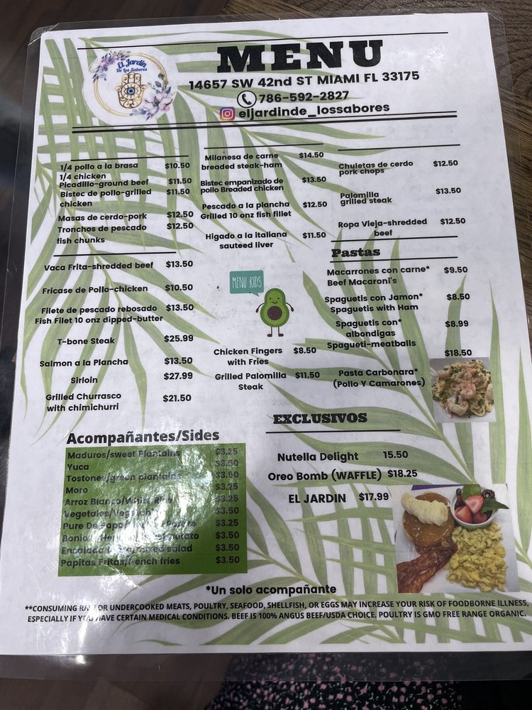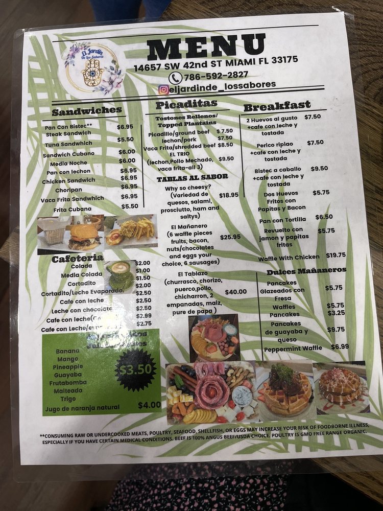 Welcome to El Jardin de Los Sabores, a charming culinary oasis located in Miami, where authentic Cuban flavors come to life through a delightful menu of sandwiches, breakfast, and brunch options. This cozy eatery, designed with a modern touch and a warm atmosphere, invites diners to savor the essence of home-cooked meals, all while surrounded by the sounds of nature and music.